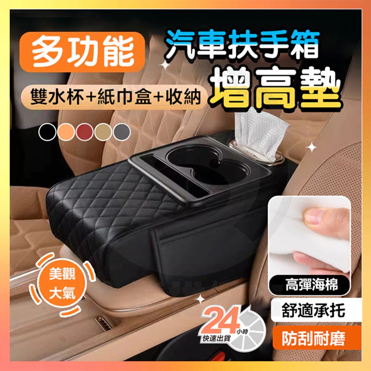 半小時前多功能汽車扶手箱增高墊,車載中央扶手紙巾盒收納袋水杯架一體,享受舒適行車體驗! - 第二個半價!!【2入組】-NT$1499